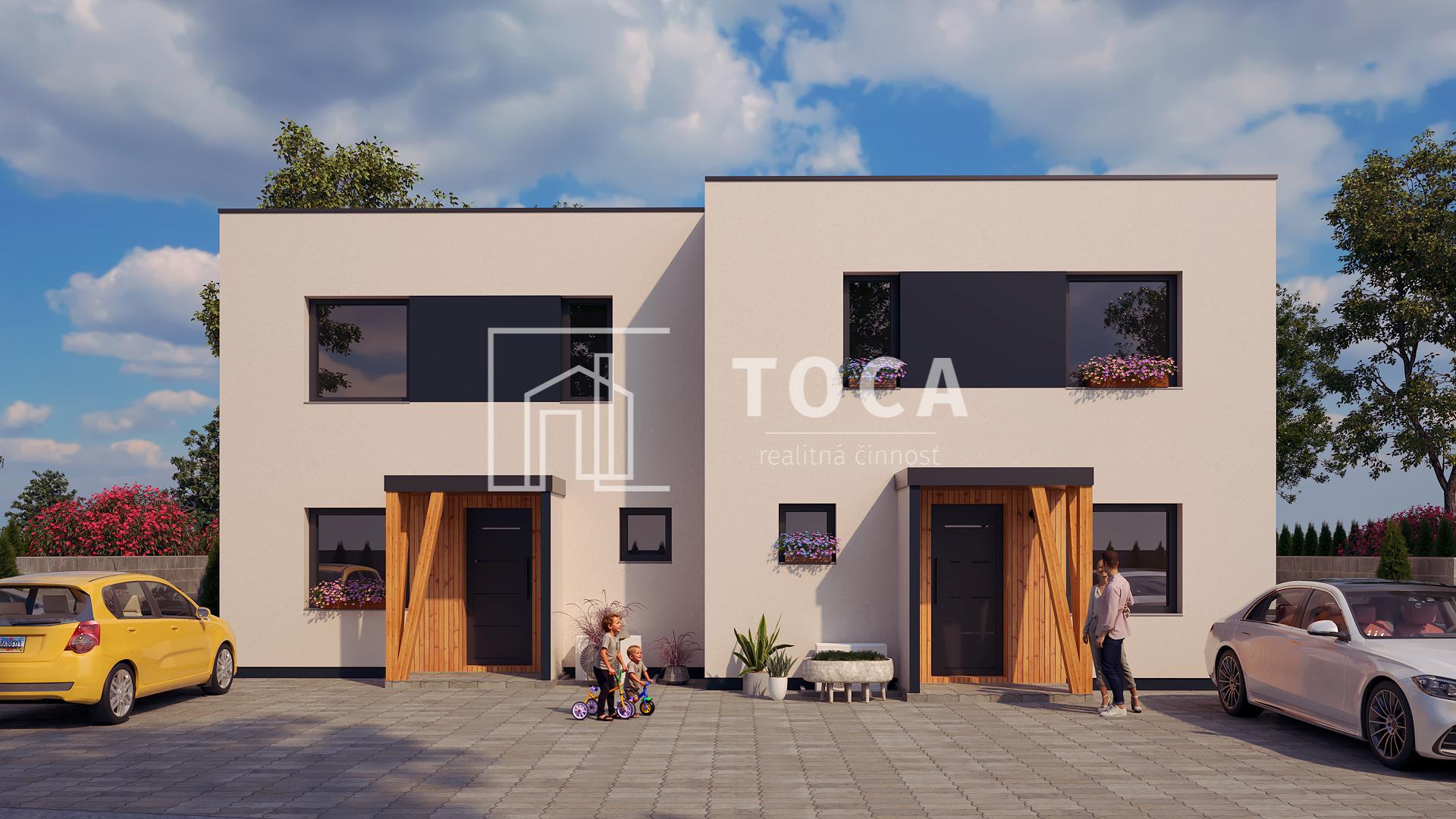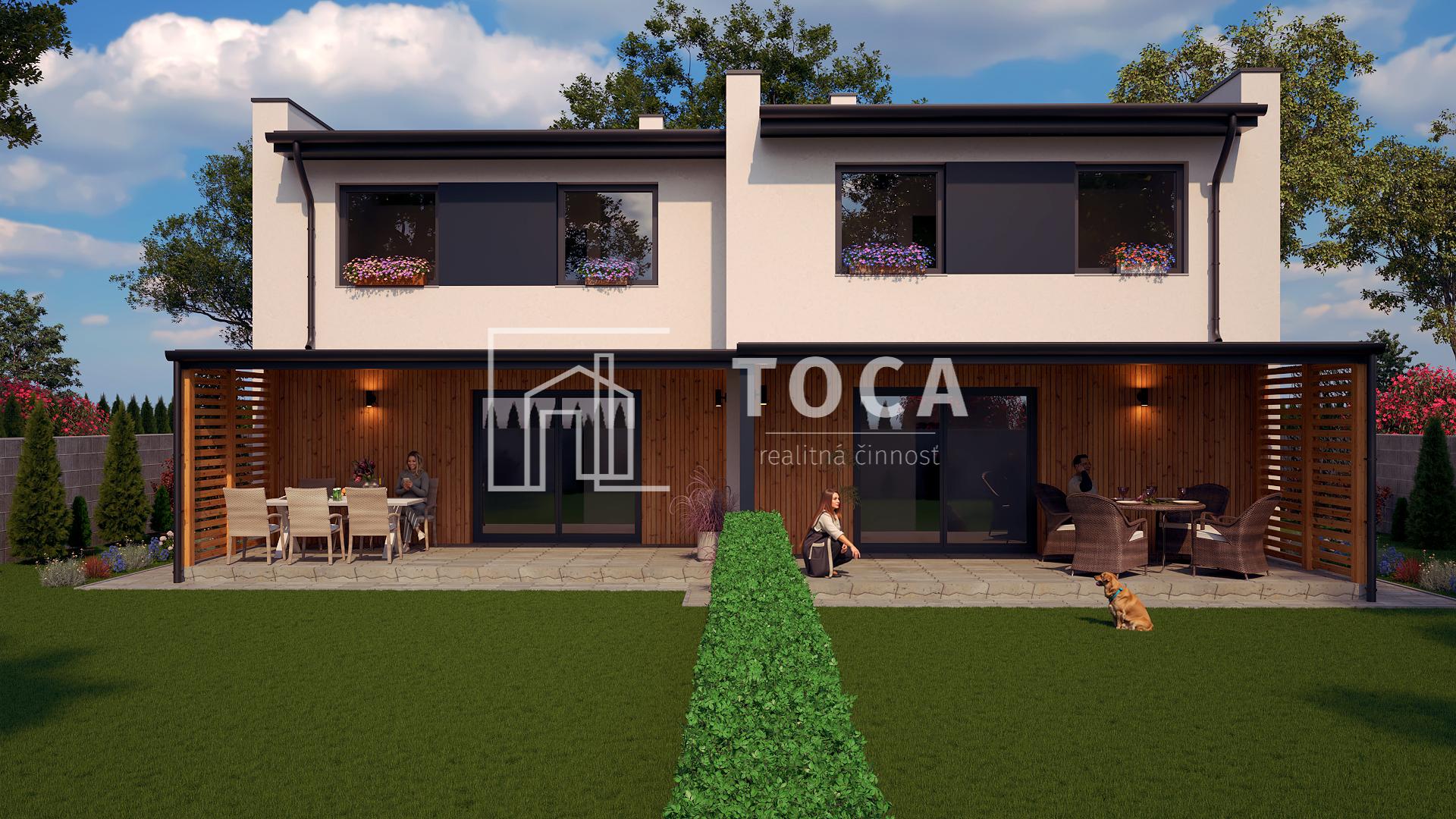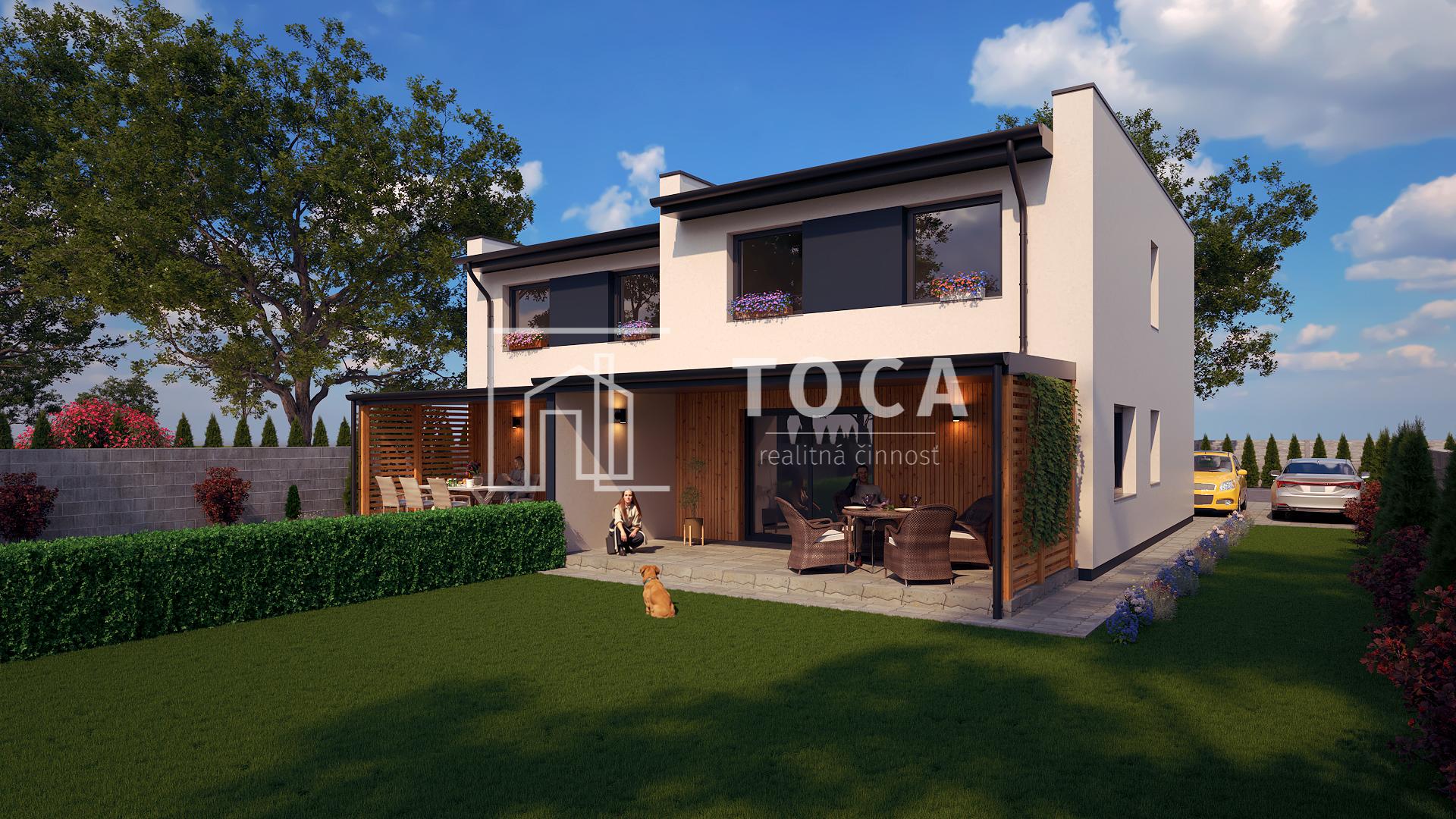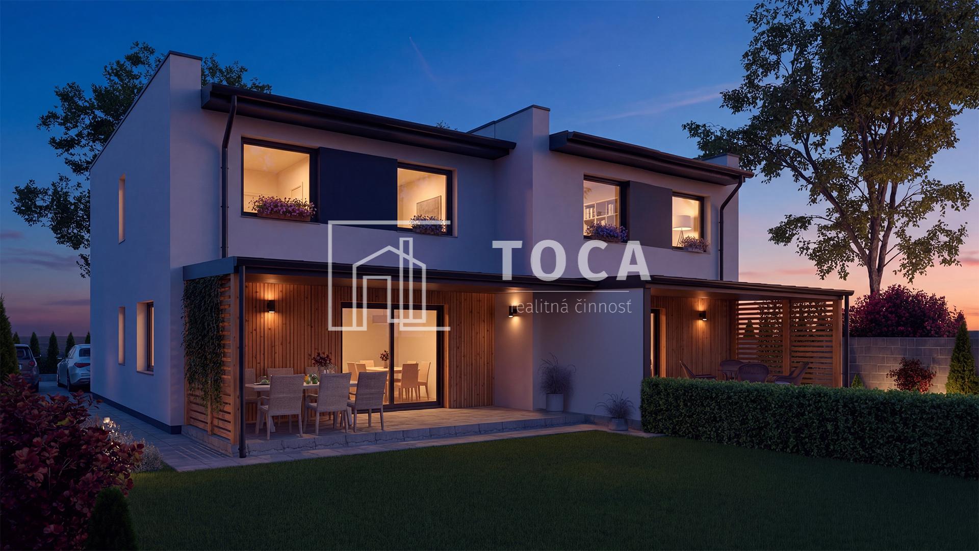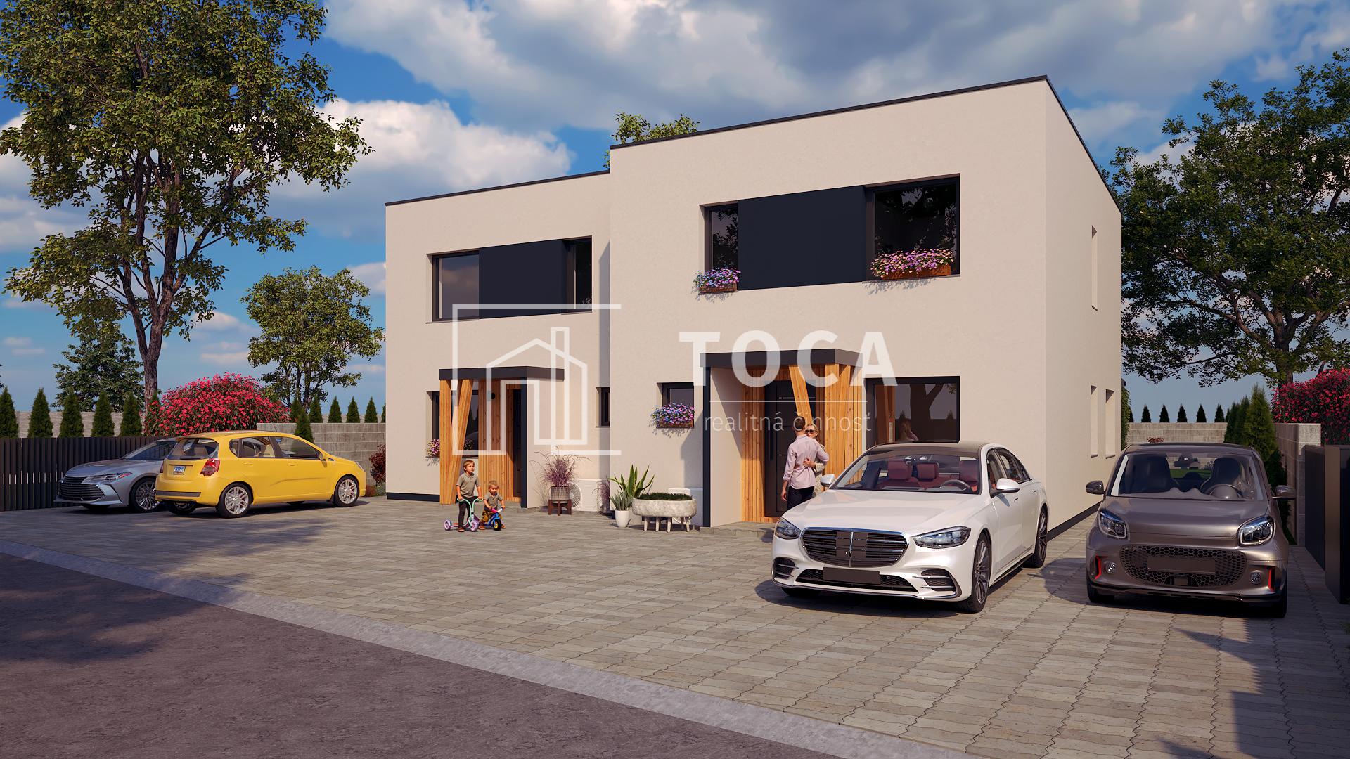 TOCA real – predaj dvoch moderných dvojpodlažných murovaných 5-izbových rodinných domov v obci Svederník, ktorá spája pokoj vidieka s výbornou dostupnosťou (Žilina 8km, Bytča 7,5km) – domy sú súčasťou štýlového dvojdomu. Projekt je aktuálne vo výstavbe s plánovaným termínom dokončenia 10/2026. Podlahová plocha každého domu je 116m2. Prízemie – podlahová plocha 58m2 a horné podlažie má podlahovú plochu 58m2. Nadstrešená terasa – 20m2. Prízemie pozostáva zo vstupnej chodby, naozaj veľkej obývačky spojenej s kuchyňou, izby (hosťovská izba – pracovňa), samostatného WC a technickej miestnosti. Z obývačky vedú veľké štýlové terasové dvere na terasu (HST portálové terasové dvere). V obývačkovej časti prízemia je situované teleso komína na ktoré je možné pripojiť krb, alebo štýlové krbové kachle. Na poschodie vedie štýlové – mierne zatočené schodisko. Poschodie má tri izby (rodičovská spálňa a dve detské izby), veľká kúpeľňa s vaňou, sprchou, dvojumývadlom a WC. Domy sú situované neďaleko obecnej asfaltovej cesty na rovinatom pozemku. Dom RD1 je postavený na pozemku o výmere 403 m2 a dom RD2 je postavený na pozemku o výmere 513 m2. Stavba je realizovaná ako dva oddelené domy – dvojitý obvodový múr na spoločnej strane a priestor medzi múrom je vyplnený izolačnou vatou pre tepelnú aj hlukovú izoláciu bytových jednotiek. Každý dom je napojený na verejný vodovod (každý dom samostatne), odpad je riešený žumpou (každý dom samostatne) a samozrejme je realizovaná prípojka optického internetu. Stavba sa predáva v štádiu holodomu čo ponúka novému majiteľovi mať dokončenie finálnej úpravy interiéru pod dohľadom a podľa jeho predstavy a vkusu. Počas dokončenia interiéru máte teda možnosť ovplyvniť výber interiérových dverí, plávajúcej podlahy (prípadne keramickej dlažby), keramického obkladu a dlažby a sanity. Kúrenie je riešené teplovodným podlahovým kúrením – moderné tepelné čerpadlo (nízke prevádzkové náklady). V cene aj vkusné nadstrešenie terasy, obslužné chodníky a parkovanie so zámkovej dlažby. Profesie na dokončenie stavby do stavu na kľúč máme zabezpečené. Pomôžeme vám s dokončením stavby.